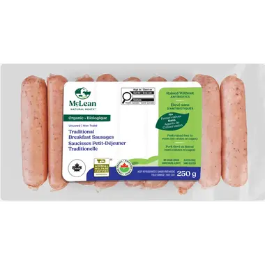 Organic Organic Roasted Turkey Breast Organic Roasted Chicken Breast Organic Prosciutto Organic Smoked Pork Genoa Organic Smoked Pork Cervelat Organic Traditional Breakfast Sausages Organic Country Maple Breakfast Sausages Organic Home-Style Chicken Sausages Organic Canadian Breakfast Pork Loin Organic Cooked Mini Ham Organic Bavarian Pork Smokies Organic Smoked Pork Cervelat Organic Smoked Pork Genoa