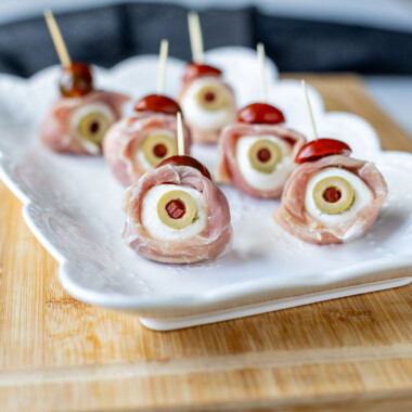 Snacks Recipes > Meal Occasion > Snacks Crostini Spooky Prosciutto Eyebites Ham Pinwheels Pizza Wreath Holiday Sliders